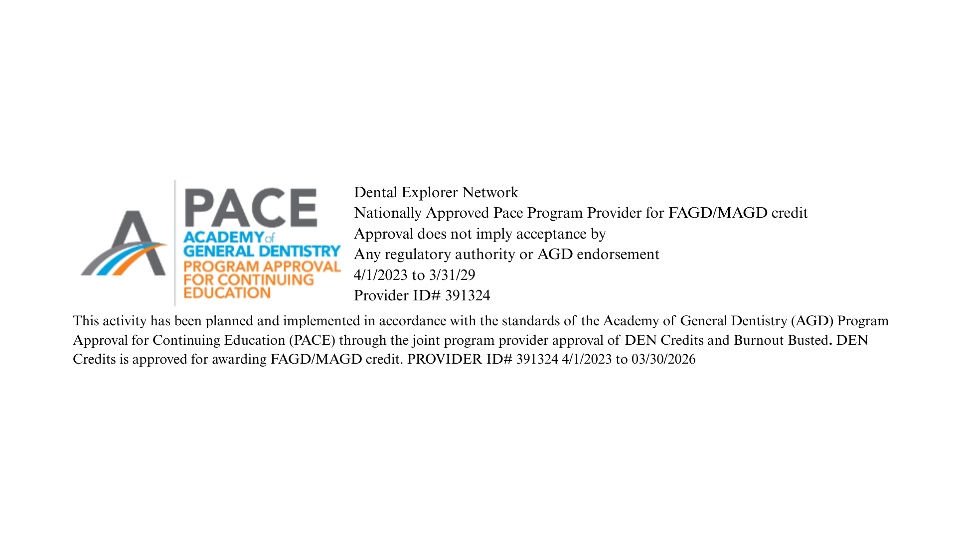 This session creates space for insight, reflection, and intentional recalibration—helping dentists respond thoughtfully to challenges rather than react under pressure. Participants will leave with practical tools and a personalized framework to support clarity, purpose, and fulfillment in both professional and personal life.